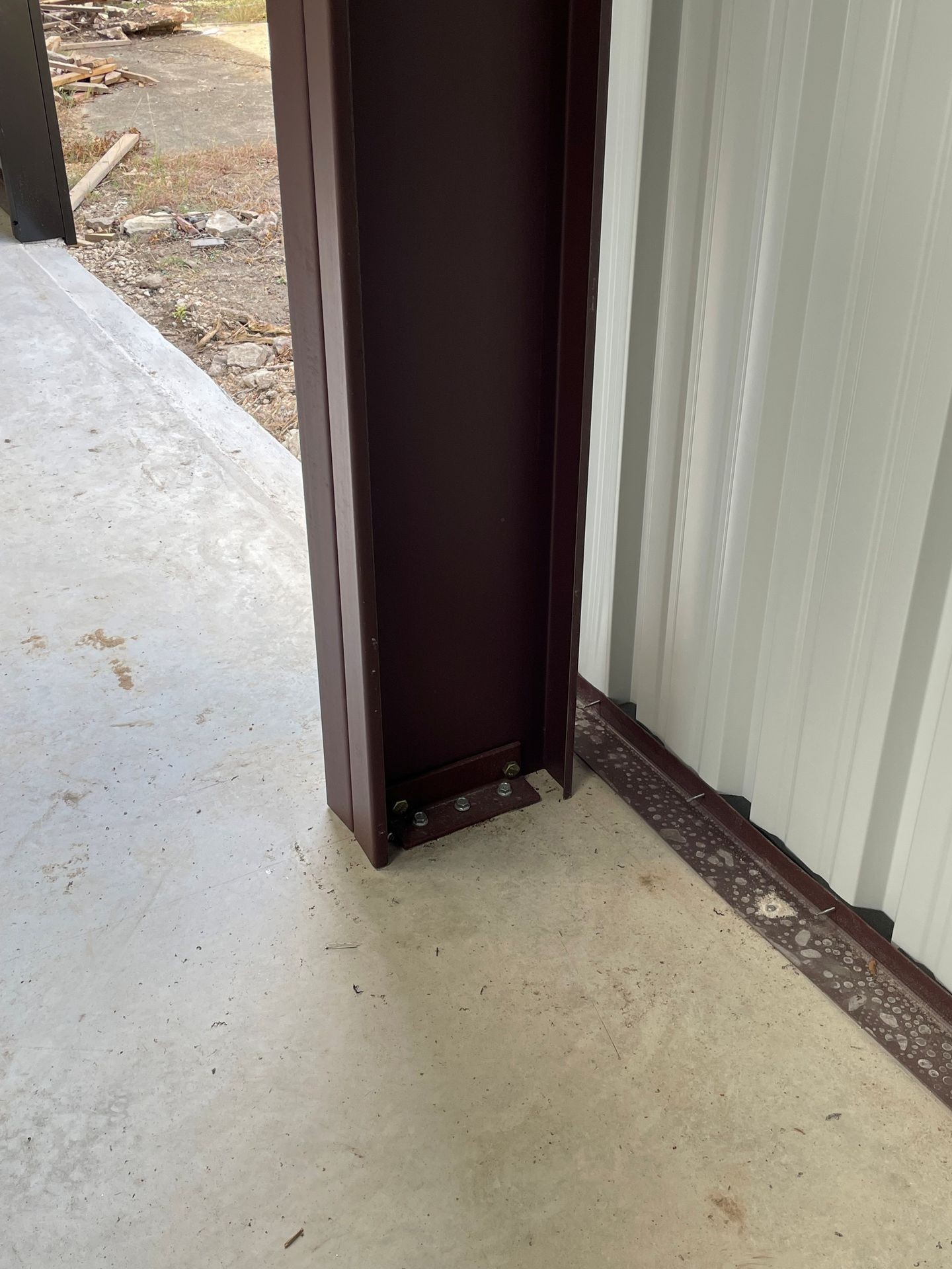 Engineered drawings →Rigid frames: isolated footings. Cold-formed: grade beam below frost. Verify anchor bolts, slab flatness, elevations, and drainage away from slab edges.